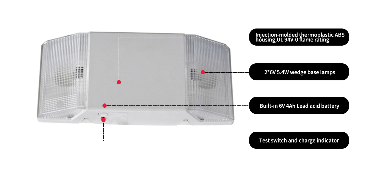 Jeu4 2x5.4W স্থির ল্যাম্প মাথা জরুরী আলো
