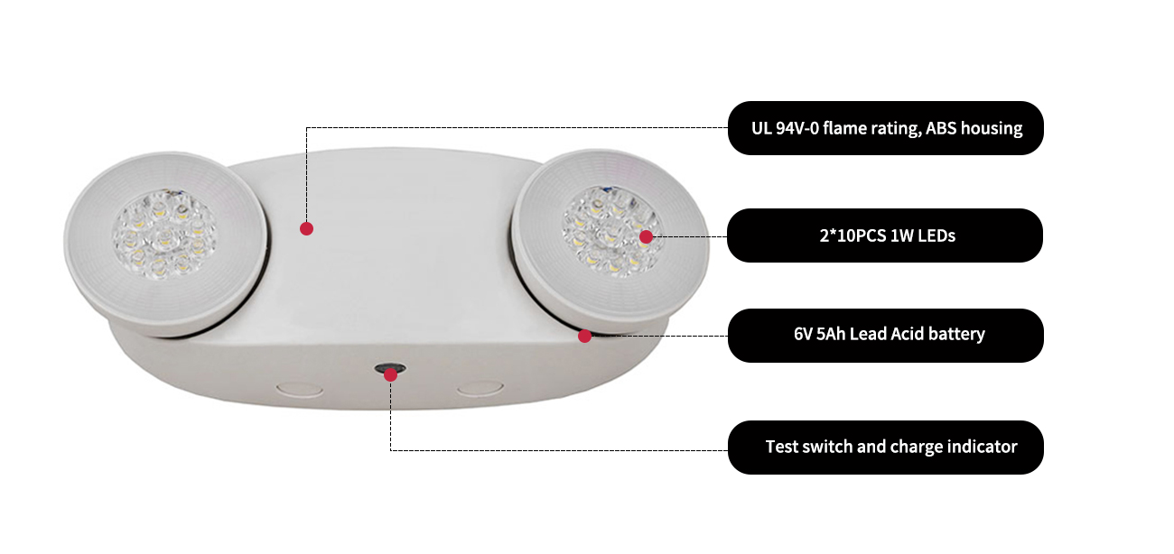 উল/কুল 1200lm উচ্চ লুমেন্স আউটপুট দ্বৈত মাথা নেতৃত্বাধীন জরুরি আলো