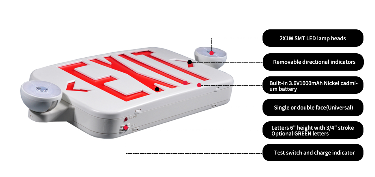 একটি দক্ষ এবং সুরক্ষিত প্রস্থান সাইন / জরুরী আলো কম্বো। এই 2-ইন -1 পণ্য কেনার অর্থ সাশ্রয় করুন। দীর্ঘস্থায়ী, কম রক্ষণাবেক্ষণ নী-ক্যাড ব্যাটারি। 120 - 277 ভ্যাক ইউনিভার্সাল ভোল্টেজে কাজ করে। ফেসপ্লেটে নক-আউট বাম/ডান তীর অন্তর্ভুক্ত রয়েছে। ফিক্সচারটি 1 বা 2 পার্শ্বযুক্ত। পণ্যটি উল তালিকাভুক্ত এবং এনএফপিএ 101, ওএসএইচএ এবং ইউএল 924 জরুরী কোডগুলি পূরণ করে। একটি বাড়ি, বাণিজ্যিক এবং শিল্প আলো হিসাবে, হলওয়ে, করিডোর, হাসপাতাল, অ্যাপার্টমেন্ট, গীর্জা, শপিংমল, সুপারমার্কেটস, স্কুল, হোটেল, পাব, রেস্তোঁরা, গুদাম, অফিস বিল্ডিং ইত্যাদি জন্য উপযুক্ত