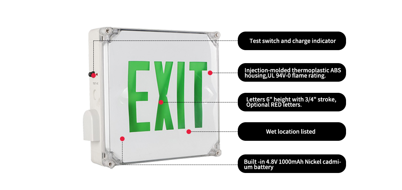 আউটডোর ওয়াটারপ্রুফ এলইডি প্রস্থান সাইন (ভেজা অবস্থান, সবুজ অক্ষর)