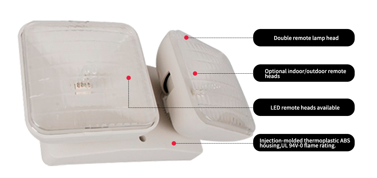 বাড়ি / পণ্য / জরুরী আলো / নেতৃত্বাধীন জরুরী আলো দূরবর্তী মাথা / জেআরএইচ -2-ইউএল 94 ভি -0 শিখা রেটিং ডাবল রিমোট ল্যাম্প হেডস